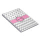 Características monogrammed modernas e na moda cinzas do caderno espiral e listras e bolinhas da viga do branco com uma beira costurada do acento fita cor-de-rosa com um quadro cor-de-rosa redondo do acento esboçado em preto e branco para seus inicial e nome. Mostre sua personalidade com este caderno espiral do divertimento e da listra na moda da viga. Aperfeiçoe para um jornal, tomando notas, trabalho, escola e casa. Faz um grande presente para todas as ocasiões. Clique "personalizam-no!" abotoe para mudar o tamanho do texto, a cor de texto, o estilo de pia batismal e o mais! Note por favor: a beira horizontal do quadro do ponto da fita do acento cor-de-rosa é rosa contínuo com uma aparência do ponto da fita.