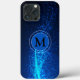Moderno, giro e glamouroso em um padrão cintilante azul, com seu monograma inicial no centro, que você pode mudar para mostrar seu inicial.