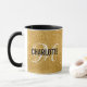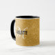 Caneca de ouro-chic com um nome de tipografia preta e um monograma de guião branco. Personalize com nome e inicial.