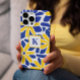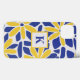 Esta capa de telefone apresenta um padrão de abstrato azul e amarelo estilo retroativo. Personalize-o com o seu texto inicial, digitado numa letra corajosa, clássica e estilizada. Um na moda, design chic — perfeito para o verão!