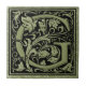 A primeira letra da tipografia inicial decorativa encantador do estilo da caligrafia do monograma de G da letra no preto sobre o forro do Livro Verde do abacate do vintage com fora do biloba branco da nogueira-do-Japão sae.