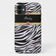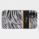 Jewel o caso do iPhone 5 do monograma com as gemas cor-de-rosa impressas bonito do diamante que bling e refrigere o teste padrão das listras da zebra com acentos impressos do ouro. Personalize o monograma com todo o nome ou iniciais. Protege seu telefone móvel no estilo e tem aberturas para todos seus portos e botões. Projetado para senhoras ou meninas que como zebras ou jóias do diamante.