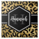 Ouro quico e leopardo preto imprimem grande azulejo cerâmico com nome personalizado e modelo de monograma. Um padrão de impressão animal de safari giro e tendencioso veio com seu próprio pedaço de personalização.