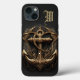 âncora náutica ouro. Âncora embalada em correntes e coberta de algas. Manly e muito detalhado. Personalize com o seu monograma inicial.