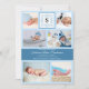 Este anúncio de nascimento de um bebê azul, com múltiplas fotografias, moderno e clássico apresenta sete das suas próprias fotografias - seis na frente de uma adorável colagem fotográfica, e um no verso com o seu nome de família monograma dentro inicial de uma coroa clássica azul. Possui um lugar para você colocar suas estatísticas de natalidade, sua própria saudação, e sentimento. Este é o cartão perfeito para enviar seus entes queridos para anunciar a chegada do seu pequeno!