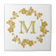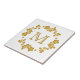 Este belo azulejo tem uma borda floral e circular de videira brilhante, de cor dourada, com o seu monograma no meio, também em ouro. O quadro de borda floral e o monograma são colocados sobre fundo branco. Muito elegante!