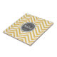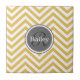 Padrão ziguezague branco e amarelo monograma com nome personalizado. Design geométrica moderna, bonita, giro, moderna, apresentando uma placa de nome em círculo de cinza que é facilmente personalizada com seu primeiro nome e a letra inicial do sobrenome.