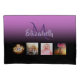 Faça sua própria colagem de fotos da família. Use quatro, quatro das suas fotos favoritas de seus filhos, família, amigos ou animais de estimação! Moderno, feminino e glamouroso com uma cor de fundo preta e violeta. Modelos para o seu monograma e nome. Letras brancas e roxas. Com ouro confetti como decoração.
