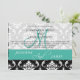 Esses belos convites para casamento seriam perfeitos para convidar seus convidados para um verão ou casamento no inverno. Este design versátil com Cor de Destaque Verde Turquesa ou Verde Minúsculo com Cor damasco de Vintagem Preta e Branca e um Inicial de Monograma e os Nomes de Noiva e Alcance são totalmente personalizáveis. Além disso, escolha entre várias fontes e belos papéis para fazer seus convites de casamento FABULOSOS! Design de Elke Clarke ©2011. Gráficos licenciados para uso comercial