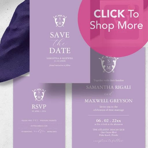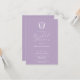 Estes convites de chá de panela roxos apresentam uma crista monográfica. Use os campos modelo para adicionar suas informações personalizadas. Para ver a suíte de papelaria de casamento correspondente visite www.zazzle.com/dotellabelle