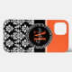 Cor damasco Preta e Branca com Design de Monograma e Cor de Destaque Laranja. Personalize com seu nome e monograma. Galeria de Perguntas e Reações