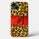 Elegante, elegante, design único e colorido; padrão de pele de animal selvagem marrom-amarelo com uma pedra vermelha brilhante em gema.Você pode mover ou redimensionar a gemstone para personalizar com suas iniciais e seu próprio texto.