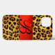 MONOGRAMA DE GEMSTONE VERMELHA COM PELO LEOPARD FU
