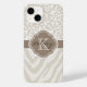 Na moda de Design de de Gato Moderno e Bonito com Traços de Zebra e Padrão Animal de Cheetah Leopard Jaguar Personalizado com Nome Monograma Personalizado e Inicial em uma Vintage Morroccan Quatrefoil Clover Border