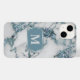Esta capa de telefone bonito mostra seu monograma em cinzas prateadas no centro de uma faixa de ornamentado azul de gelo que está revestida em prata. A faixa é colocada sobre um fundo de mármore branco falso que é colocado com brilho azul falso. Atraente para um homem ou uma mulher.