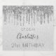 Para uma festa de aniversário entre raparigas e glamourosas 21 (ou qualquer idade) com as raparigas. Um fundo metálico falso prateado com pingos de brilho falso, aparência de pingar tinta. O texto: O nome é escrito em preto com um moderno script de estilo escrito à mão. Personalize e adicione um nome, 21 anos e uma data. Data de nascimento ou data da festa.