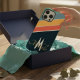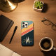 Na moda minimalista e elegantes 80 estilos design de linhas horizontais coloridas inspirados pela legal era vintage do estilo 70, com uma paleta de esquema de cores retro dos anos 80 de laranja amarelo azul e azul-cinza elétrico para todas as pessoas nostálgicas. essa design pode ser personalizada e personalizada com estilo retro caligrafia inicial de nome e monograma tipografia de formigas.