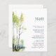 Monograma QR Code RSVP Birch Forest Woodland Convite para Casamento... A frente de nosso convite de casamento inspirado no monograma, da natureza do nosso barato, apresenta um trio aquarela de pássaros na borda da floresta, junto às iniciais da noiva e do noivo, e um texto de convite personalizado à direita. A parte traseira do convite inclui o código QR do seu site de casamento, bem como o URL do site, permitindo que seus convidados RSVP on-line facilmente, escolham suas opções de refeições e visualizem todos os detalhes normalmente enviados em um pacote de casamento. Nosso convite de casamento de dois lados, ecologicamente amigável, permite que você salve papel (e árvores), incluindo uma maneira fácil de ver os detalhes de seu casamento on-line, em vez de em dois ou três cartões separados de papel. O exemplo de código QR e todo texto de exemplo (além dos elementos de caligrafia) podem ser facilmente revisados com suas próprias informações sobre o modelo de personalização.