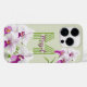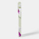 Orquídeas brancas e magenta, brancas e delicadas, fluem monograma iPhone 14 Pro. Fundo verde pastel macio. Personalize Texto, tipo de fonte e cores para sua preferência.