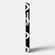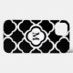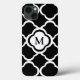 Um gabinete Tough Xtreme iPhone 6 com um padrão quatrefoil preto e branco e um monograma preto num quatrefoil branco solteiro no centro. Personalize-o facilmente editando o monograma do modelo com suas iniciais no campo modelo do design no lado direito. Faz também um presente único para aniversários e outras ocasiões especiais.