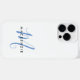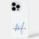 Capas de iphone de Monograma de Script Azul Branco Moderno Elegante. Um monograma elegante de script azul combinado com uma fonte limpa de san-serif preta faz uma aparência contemporânea.