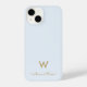 Um design monograma moderno e elegante, com tipografia de escrita minimalista dourada e tipografia de blocos sans serif, num elegante fundo azul claro Dusty. O monograma e o nome podem ser facilmente personalizados.