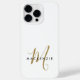 Capas de iphone de Monograma Dourado de Script Branco Moderno Elegante. Um monograma elegante de script dourado combinado com uma fonte san-serif preta e limpa faz um olhar contemporâneo.