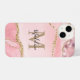 Design apresenta gemstone de decodificação rosa-rosado pincelado com glitter dourado curado. Monograma clássico de ouro com tipografia elegante da escrita.