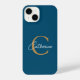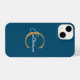 Caso personalizado do iPhone 14 com uma aparência simples, mas elegante, de azul e ouro.