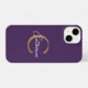 Caso personalizado do iPhone 14 com uma aparência simples, mas elegante, de roxo e ouro.
