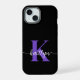 Este iPhone 15 preto simples e elegante Caso com seu primeiro nome em uma letra de script de tendência em branco e sua primeira inicial em uma fonte moderna de boné em roxo pareceria fabuloso em seu celular e o manterá protegido contra quebra. É na moda e moda e, no entanto, muito clássico.
