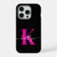 Este iPhone 15 Pro iPhone preto simples e elegante com o seu primeiro nome numa letra de script de tendência em branco escrito sobre a sua primeira letra inicial num boné moderno em rosa quente seria fabuloso no seu telefone celular e irá protegê-lo contra quebras. É na moda e moda e, no entanto, muito clássico.