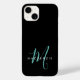 Capas de iphone de Monograma Moderno de Letra Negra Negra. Um monograma elegante de um roteiro teal combinado com uma fonte branca de san-serif limpa faz uma aparência contemporânea.