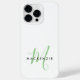 Capas de iphone de Monograma de Script Verde Branco Elegante. Um monograma elegante de script verde combinado com uma fonte limpa de san-serif preta faz uma aparência contemporânea.