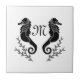 Dois cavalos-marinhos em forma de serpentina são feitos no estilo da silhueta. Na base do cavalo marinho estão algas. Entre o cavalo está a letra "M", o m é curto para monograma e pode ser mudado para um inicial personalizado.
