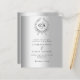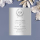 Um fundo com aspecto sujo de prata e uma coroa. Personalize e adicione suas iniciais, nomes e detalhes do monograma. Texto preto. 1 folha = 1 convite impresso de borda a borda.