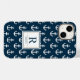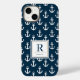 Marinho Marinho Anchor Náutico Moderno Elegante Monograma Branco Azul Monograma, inicial, Padrão de Nome Personalizado. Personalize esta bela capas de iphone com o seu nome e nome iniciais.