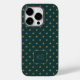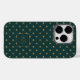 Capas de iphone verde-escura de luxo clássico com um elegante padrão real de pulgas de ouro. +++++++++++++++++ Fácil de personalizar com o seu monograma, duas iniciais de nome. ++++++++++ Pode ser um presente personalizado elegante para um aniversário, Natal ou qualquer outra ocasião.