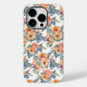 Moderno Elegante Monograma M Peach Blue Floral Pattern Case-Mate iPhone 14 Pro Case.