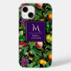 Folhas verdes tropicais elegantes e Capas de iphone de monograma de padrão negro de frutas tropical. Cobrir bonito, divertido e de moda para o lendário de arte. Mostre seu estilo pessoal e sinta-se legal com um design único no seu celular ou personalize-o sobre outro produto de sua escolha. Adicione seu nome e monograma com uma tipografia caligráfica legal e moderna. Faz a ideia perfeita de presente para um doce aniversário de 16 anos, casamento, chá de panela, aniversários, chás de fraldas ou festas de solteira, dia de os namorados, Natal ou como presente em geral.