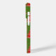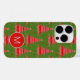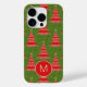Design de padrão de árvore de Natal vermelho sobre fundo verde com flocos de neve vermelhos. A letra "M" do Monograma personalizado pode ser adotada de acordo com as suas necessidades.