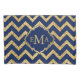 Monograma do Padrão Zigzag Azul Glitter Dourado
