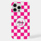 Quadrados marcados com capas de iphone de Monograma, cor-de-rosa-quente, cor-de-rosa. Personalize com seu nome e inicial personalizados. Legal design de padrão quadrado geométrico verificado retroralmente. Verificador moderno branco e rosa quente do azulejo Vintage.