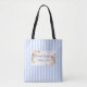 Saco de tota de faixa azul e branca com inserção de flor para adicionar seu nome e título personalizados (pode ser mudado para Madrinha de casamento). Também adicione sua data de casamento. Um presente perfeito para a dama de honra que eles podem usar para levar suas maquiagens e calçados para a igreja para se prepararem.