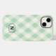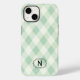 Seu monograma enquadrado pelo solteiro destaca essa capas de iphone verde e branca de gingham.