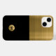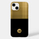 Medalhão de monograma de metal luxo moderno escovado com monograma, com monograma inicial em blocos clássicos, em fundo preto e dourado.