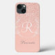 Capas de iphone Elegante Dourada Glitter Monograma Rosa cerâmica