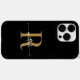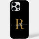 Na moda moderno preto e Dourado Monograma, Elegante, Nome inicial Script de assinatura capas de iphone personalizada personalizada. Este design com um primeiro nome em uma caligrafia (ou tipografia) bonito com letras maiúsculas e minúsculas com letras maiúsculas em ouro e branco em preto. Fácil personalizá-lo. Excelente presente feminino de aniversário, doce aniversário de 16 anos, dia da mãe, para festa de formatura e é para a garota que ama coisas na moda únicas.