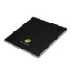 Luxury Black e Dourado Designation com monograma preto no elemento do círculo dourado com o nome no estilo de fonte profissional dourada sobre fundo preto.