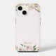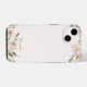 Um elegante monograma floral iPhone 14, decorado com lindas rosas e peônias cor-de-rosa. Uma capa de telefone adorável para primavera ou jardim de verão com um roteiro de ouro antigo chic.